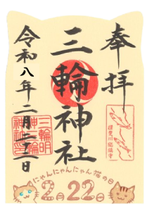 ねこの日御朱印 令和8年2月19日 頒布期間:2月21日(土)〜2月24日(火) 授与方法:書き置きのみ *お一人様2体まで 初穂料などの詳細はお尋ねください。 Tweet Share ねこを見つけてください 前の記事